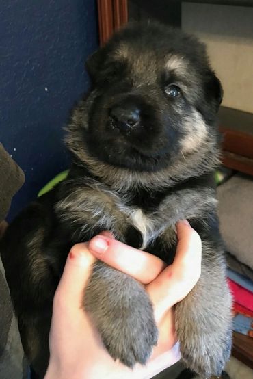 Kaiser was born in February 2018. He is an Ardent Haus puppy from Ardent Haus German Shepherds in Iowa. Kaiser is a black and cream saddle-back. His papers list his color as black and tan, but he has changed colors, as you can see in his pictures. He weighs 115 pounds. Kaiser is a stunning male and produces beautiful babies.