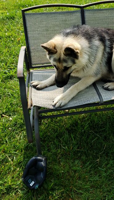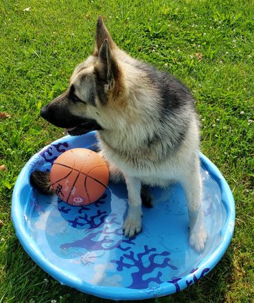 Kaiser enjoys playing with our grandchildren. He absolutely LOVES to play in water! His new thing that he enjoys is riding in the side-by-side. He is very loving and gentle. Kaiser loves meeting new people and thinks that the only reason we get visitors is because people are coming to see him.